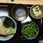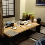 La chica nos pregunta si hemos cenado y al decirle que no nos dice el único sitio que estaba abierto a esas horas a parte de la tienda. Nos dirigimos allí y disfrutamos de una buena cena en un lugar bastante bonito. La cena completa, con postre y todo me cuesta unos 1800 Yen (13,80€).