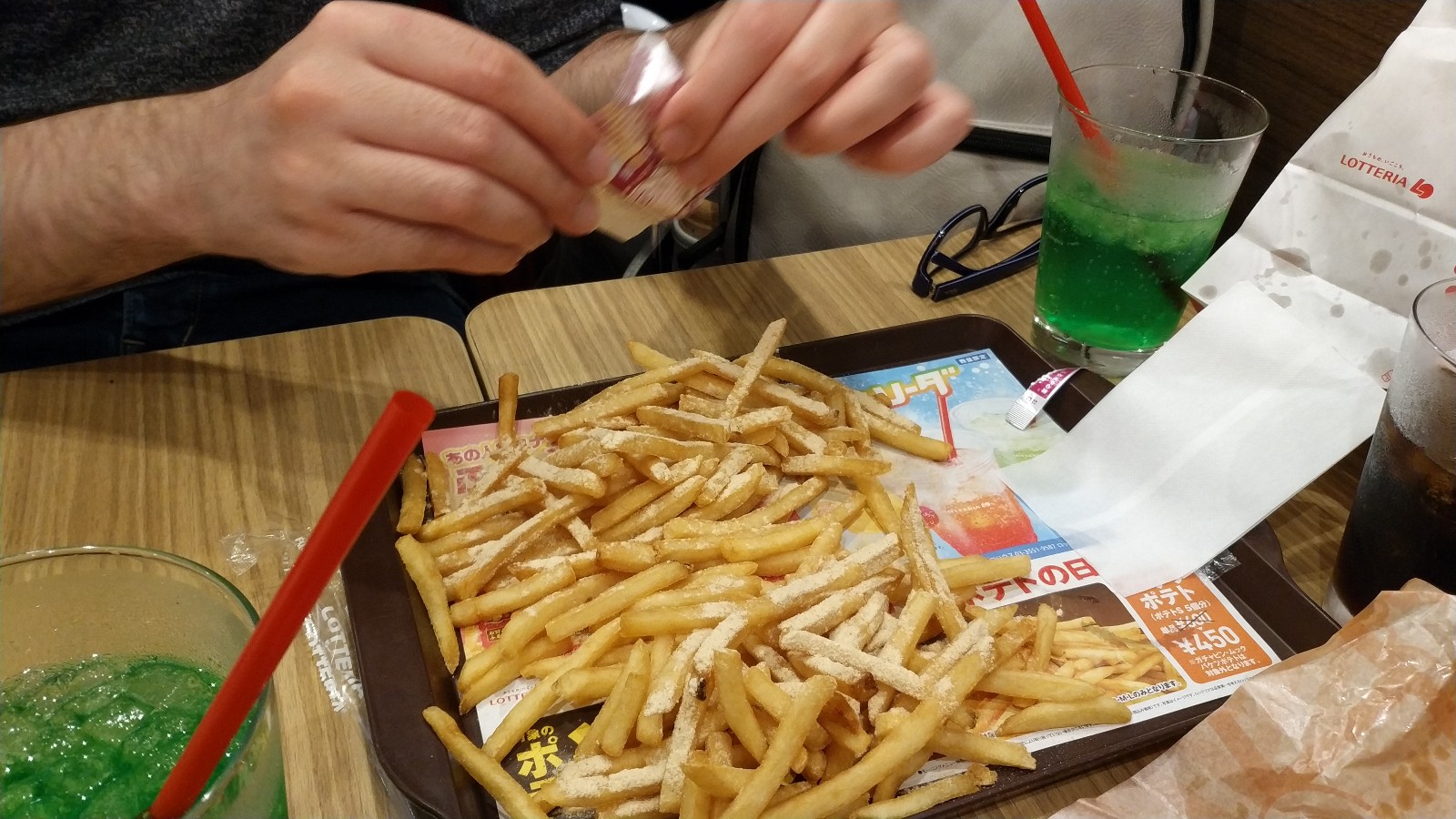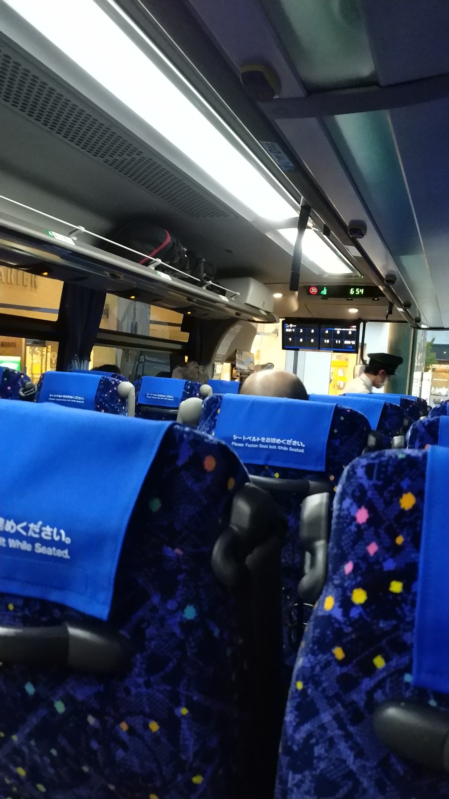 Nuestra sorpresa llega cuando nos enteramos que no sale guagua a las 17:30 sino que tenemos que esperar hasta las 18:55 así que … Pagamos cada uno 1700 Yen (13€) por el viaje y otra vez a hacer tiempo, comemos algo en la hamburguesería Lotteria, un menú por 770 Yen (6€) y damos otra vuelta por un centro comercial y a las menos veinte estamos en la parada de guagua. Llega, metemos las maletas y una vez más … Rumbo a lo desconocido ?.