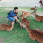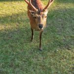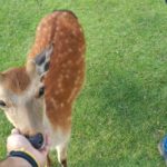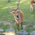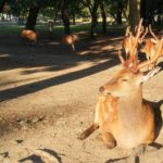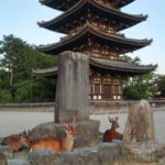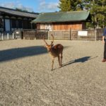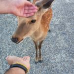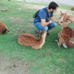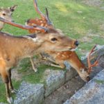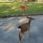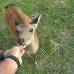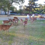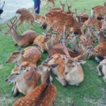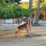 Compramos unas galletas para ciervos que vendían ahí por 150 Yen (1,15€) y estuvimos un par de horas dando vueltas y acariciando ciervos, ciervos que en cuanto ven la galleta te persiguen en manada como zombis, bastante curioso, alguno incluso me mordía la camisa o me daba toquecitos con los cuernos para que les dieras más , había alguno listo que incluso hacía reverencias. Después de esto volvemos al hotel, una ducha y a descansar.