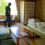 Hoy toca levantarse temprano otra vez, nos preparamos, recogemos todo y desayunamos para dirigirnos rápidamente hacia la estación. Antes de irnos Kei (quien lleva el alojamiento) se asoma para despedirse de nosotros.