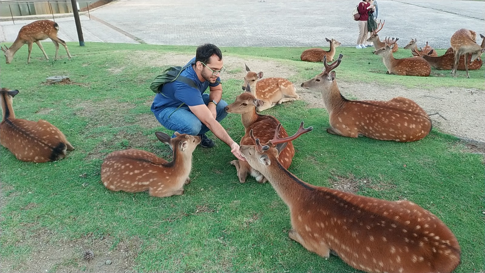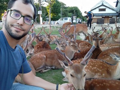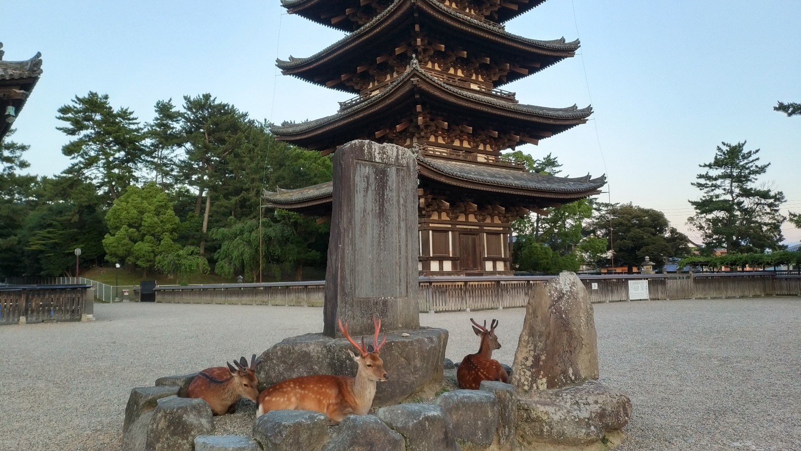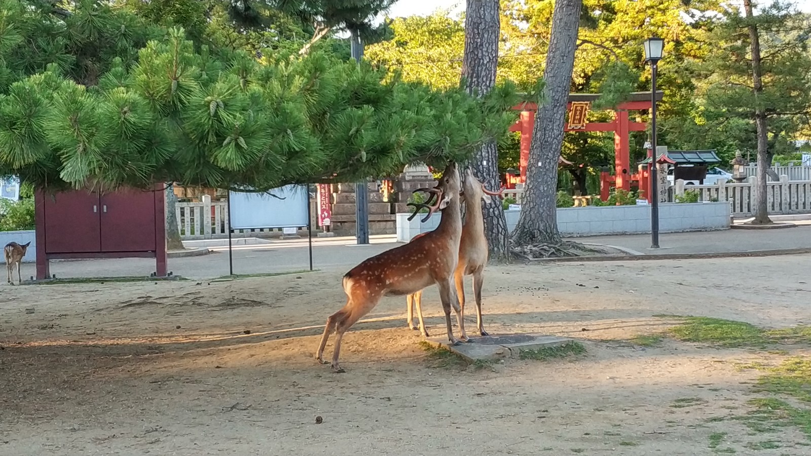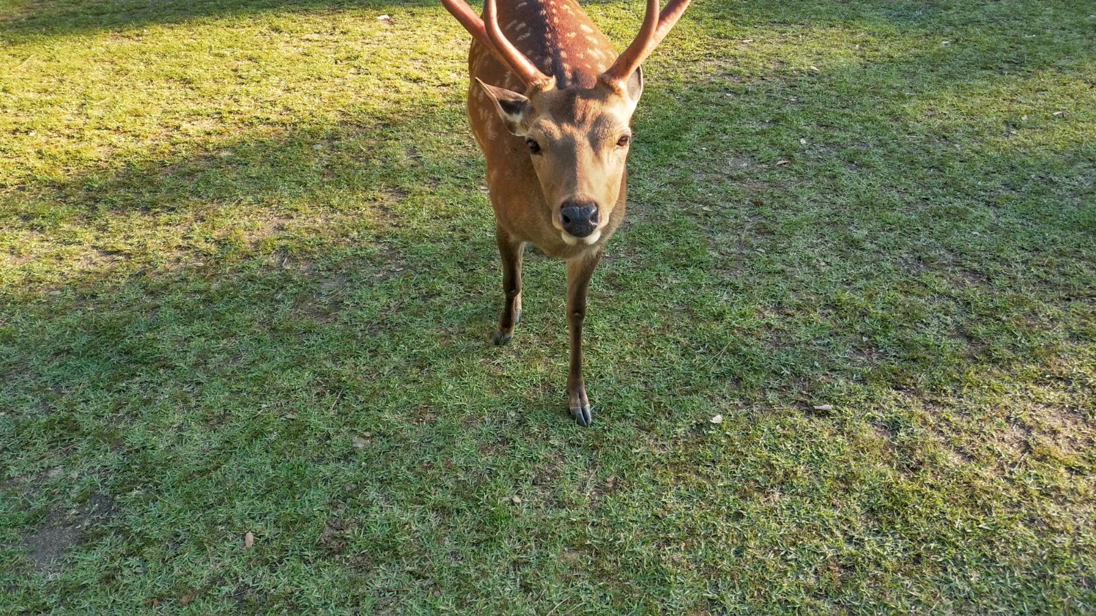 Compramos unas galletas para ciervos que vendían ahí por 150 Yen (1,15€) y estuvimos un par de horas dando vueltas y acariciando ciervos, ciervos que en cuanto ven la galleta te persiguen en manada como zombis, bastante curioso, alguno incluso me mordía la camisa o me daba toquecitos con los cuernos para que les dieras más , había alguno listo que incluso hacía reverencias. Después de esto volvemos al hotel, una ducha y a descansar.