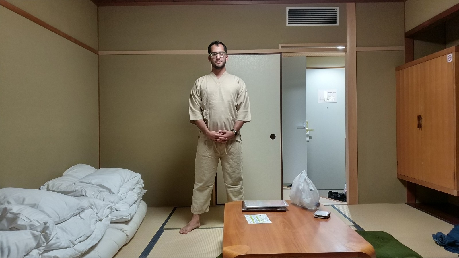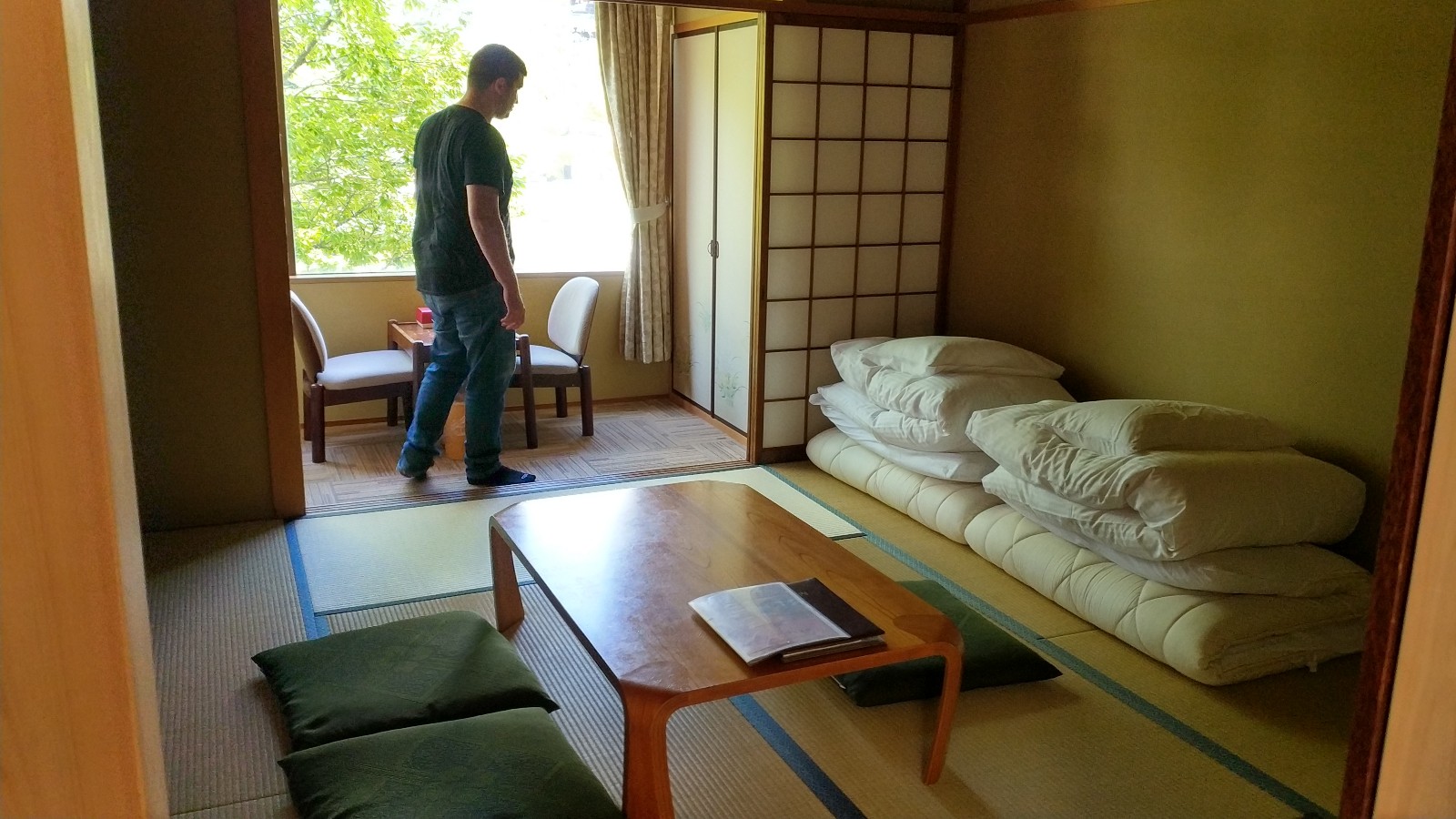 Llegamos a las 3 menos veinte, vamos al alojamiento y hacemos el checkin, nos dan las llaves, dejamos las cosas y vamos a almorzar, unos 1600 Yen (12,30€).