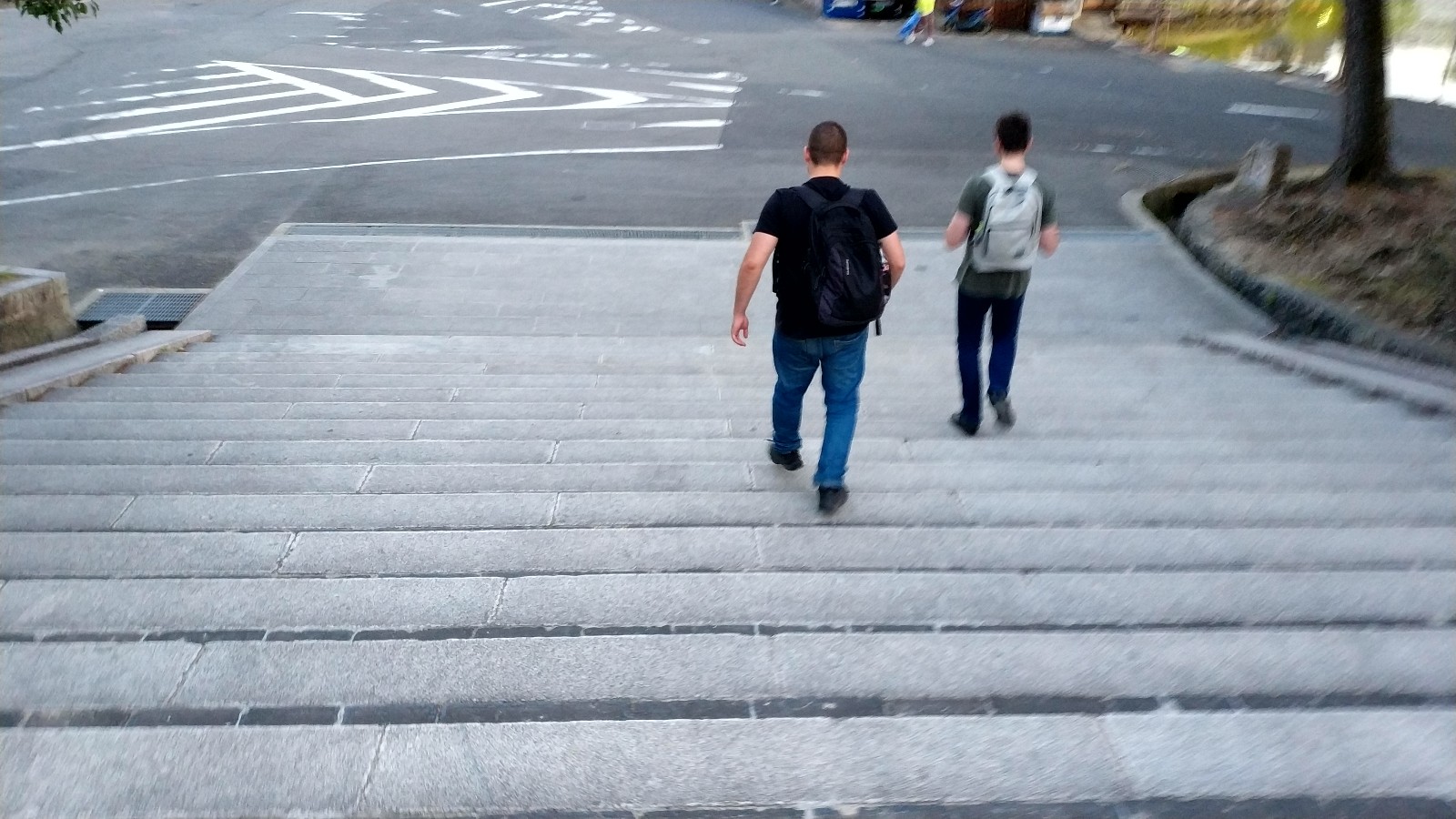 Hoy toca levantarse temprano otra vez, nos preparamos, recogemos todo y desayunamos para dirigirnos rápidamente hacia la estación. Antes de irnos Kei (quien lleva el alojamiento) se asoma para despedirse de nosotros.