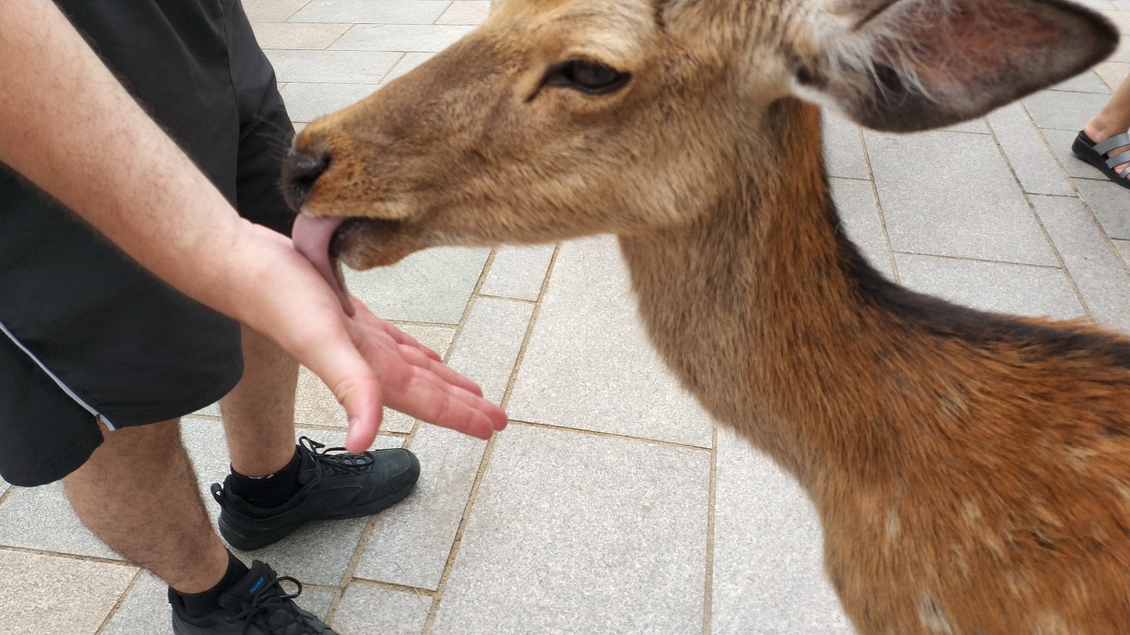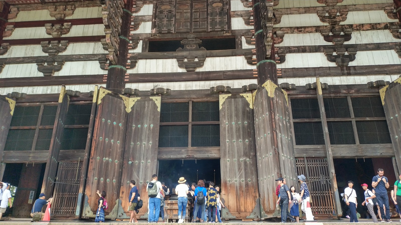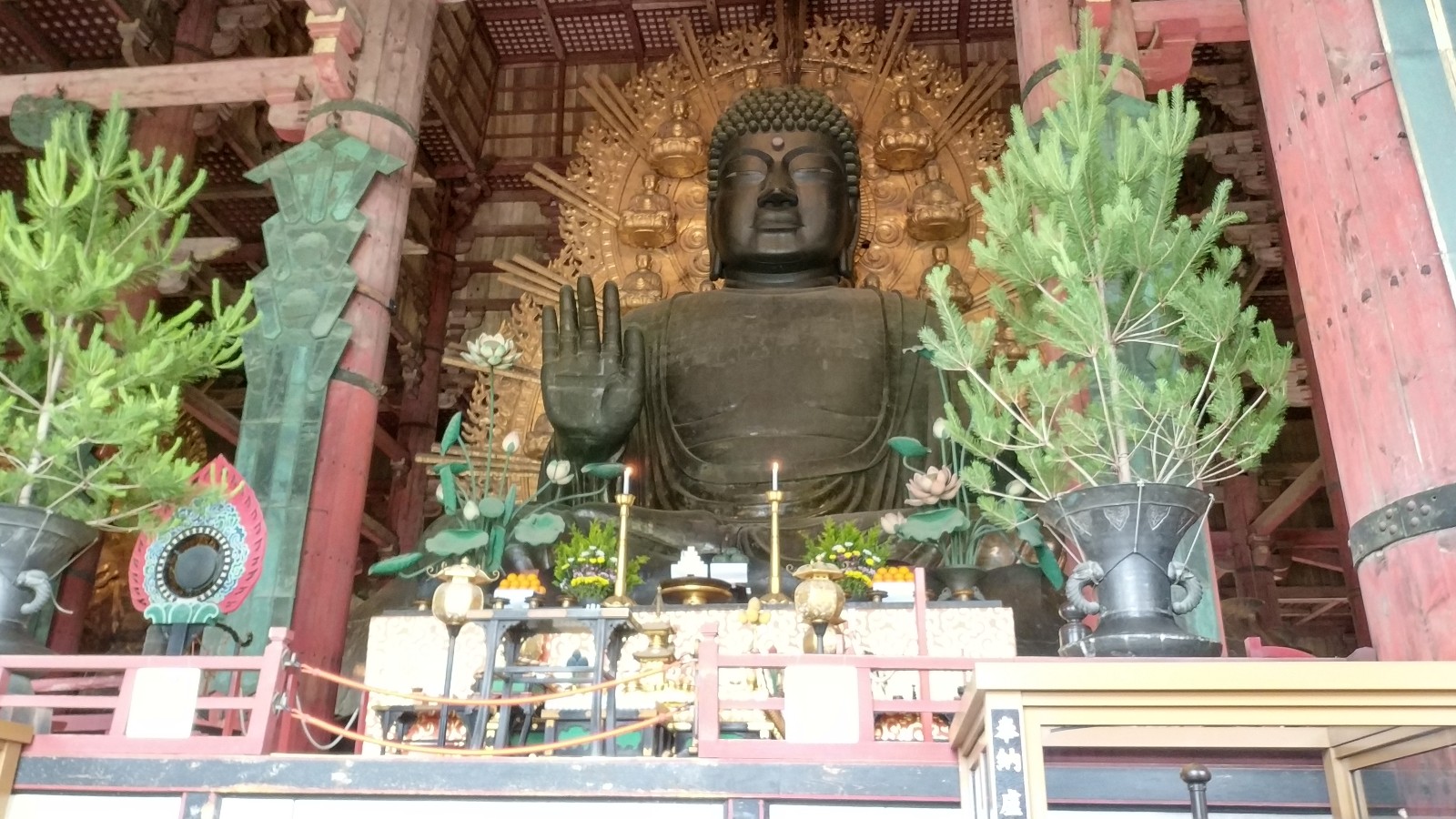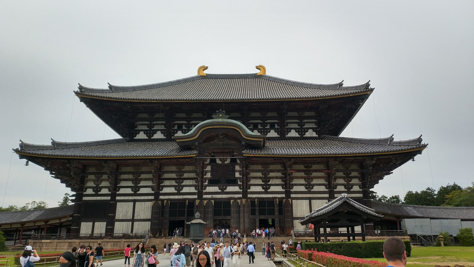 Decidimos alquilar una bici y damos una pequeña vuelta, llegamos hasta el templo Todaiji y entramos a verlo por 600 Yen (4,60€) aquí está el edifico de madera más grande del mundo (o eso dicen) y también un gran buda de 15 metros.