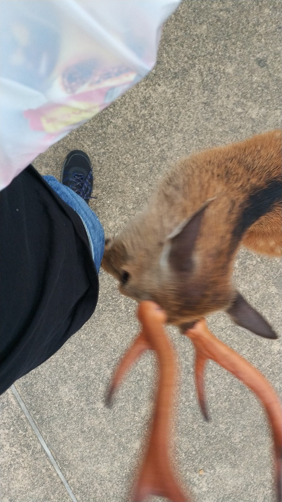Después devolvemos las bicis y vamos a almorzar al mismo sitio. Comemos y seguimos andando, viendo tiendas, acariciando ciervos y dando vueltas por el parque.