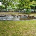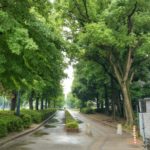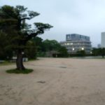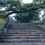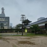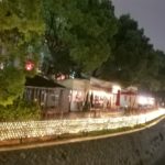 También pasamos por el castillo de Hiroshima y vemos los jardines de noche bajo la lluvia.