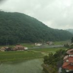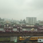 Después de otro pequeño temblor salimos a las 9 para coger el tren a Kioto, una vez allí cogemos otro que tiene un buen retraso, tren de las 9 y cuarto que debería habernos dejado en nuestro destino en unos 25 minutos lo hace a las 10:50, vamos raudos a coger el Shinkansen de las 11:08 para finalmente llegar a Hiroshima 12:40, donde llovía un poco.
