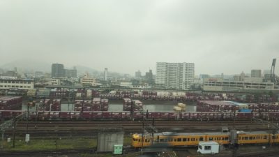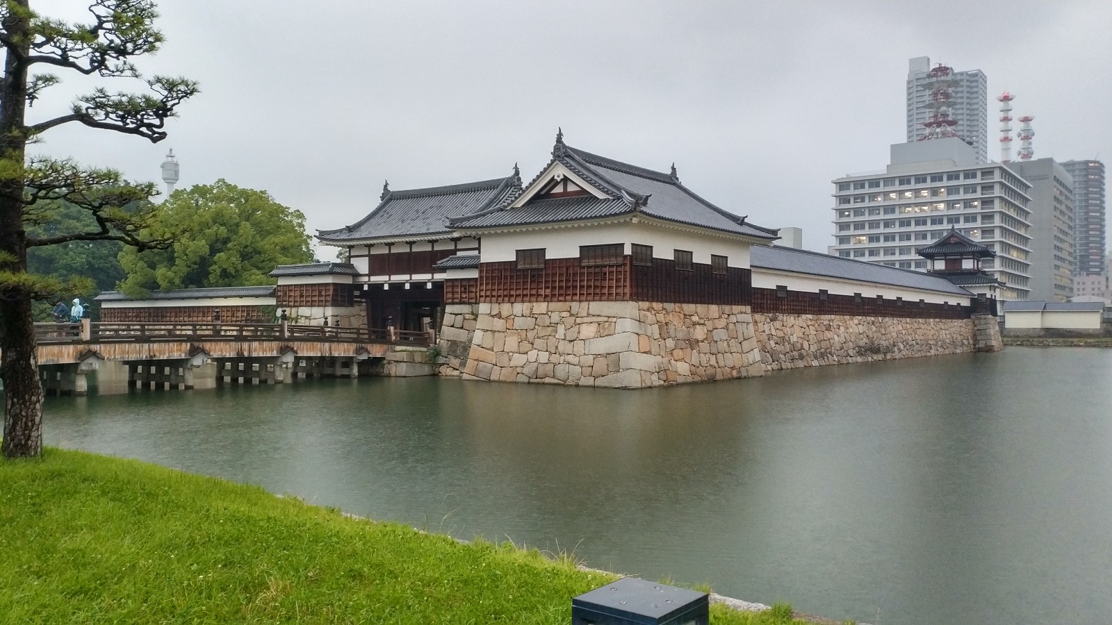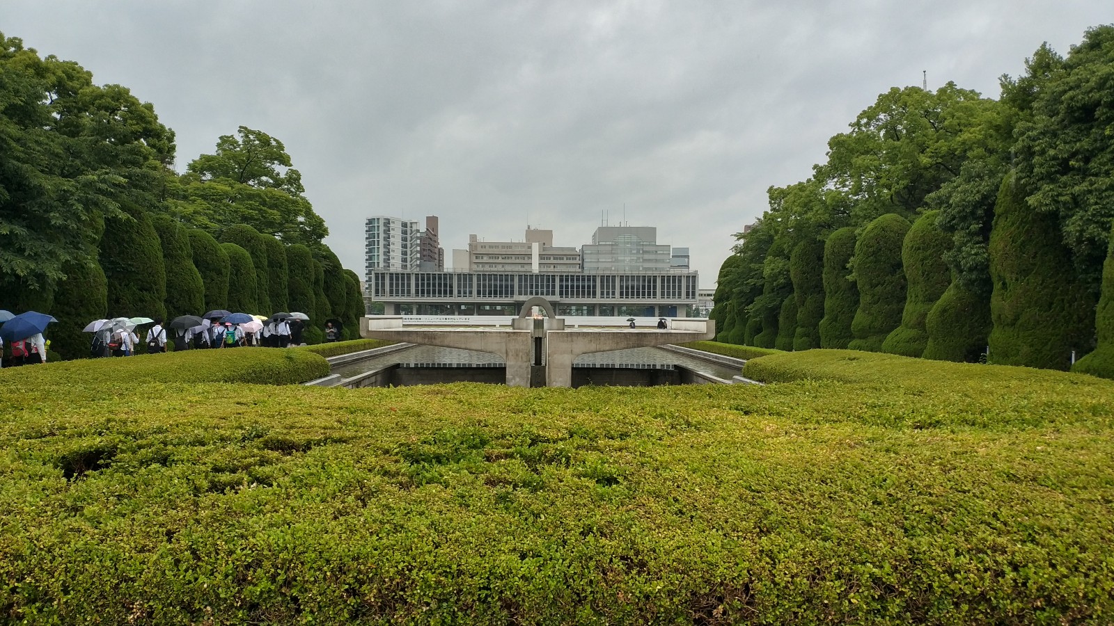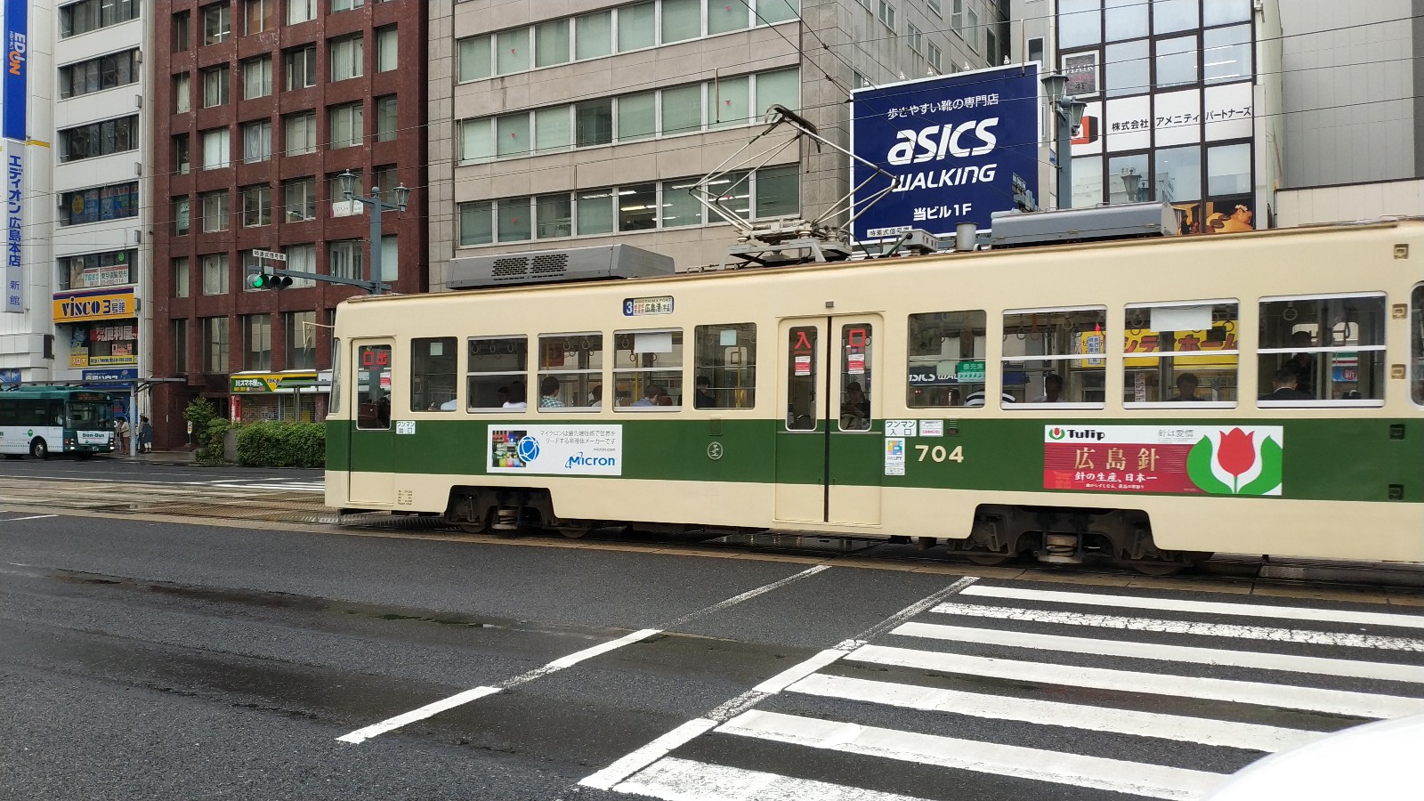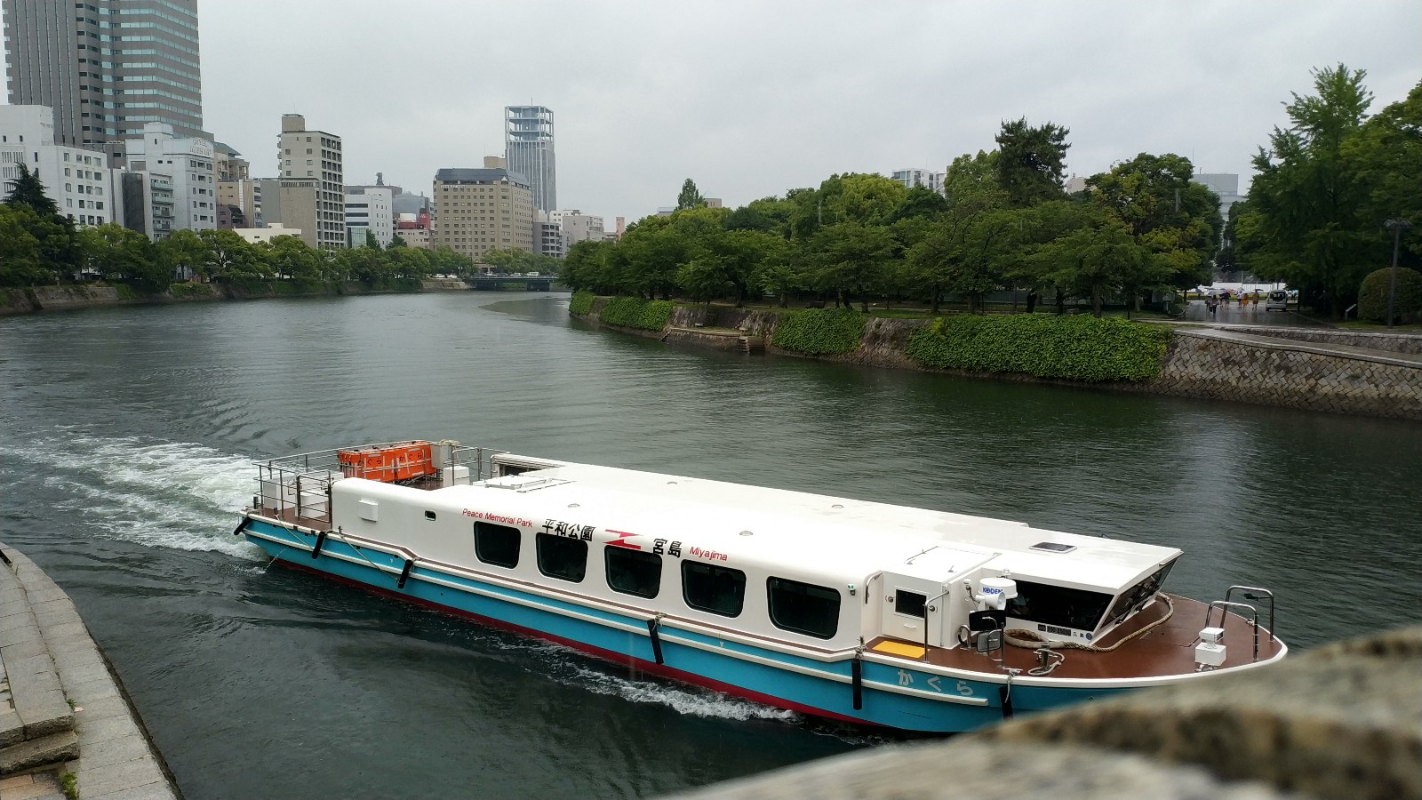 Después de otro pequeño temblor salimos a las 9 para coger el tren a Kioto, una vez allí cogemos otro que tiene un buen retraso, tren de las 9 y cuarto que debería habernos dejado en nuestro destino en unos 25 minutos lo hace a las 10:50, vamos raudos a coger el Shinkansen de las 11:08 para finalmente llegar a Hiroshima 12:40, donde llovía un poco.