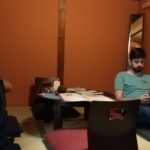 A las diez y media ya estamos dejando las cosas en el nuevo alojamiento y nos vamos a dar un paseo, desayunamos en un bar tranquilo bastante agradable que lo llevan dos señoras muy majas, pizza de 3 quesos y limonada 900 Yen (7€), comemos y seguimos nuestro camino.