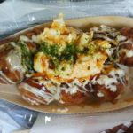 En nuestro camino de vuelta al alojamiento nos paramos a comer en un lugar llamado Nakau, está vez encontramos la máquina de pedidos rápido pero casi no decidimos que comer ya que el inglés no era tan inglés … No sé exactamente qué comí, algo de cerdo pero era barato, 380 Yen (3€)